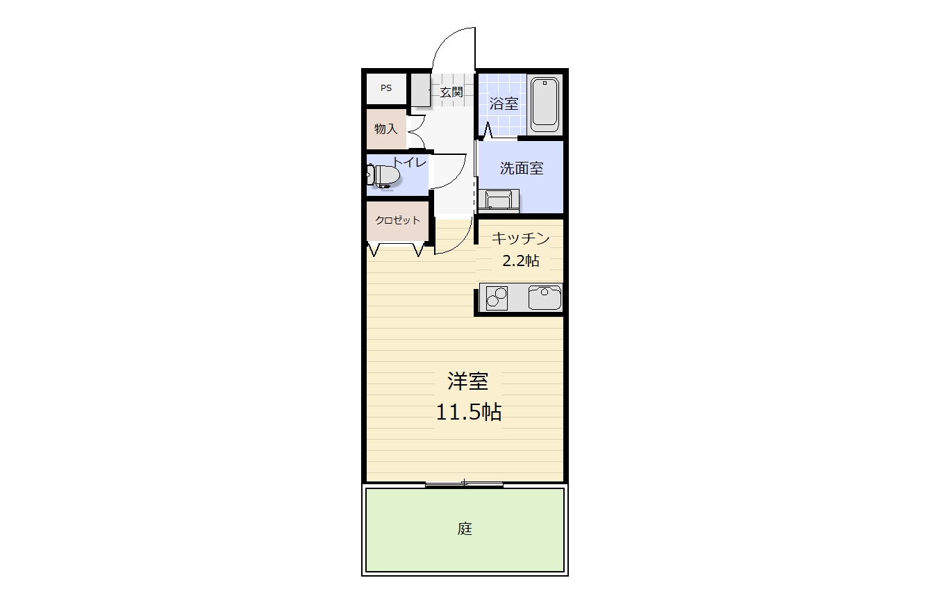 専有面積41.4㎡の広々空間、1Kタイプのアパートです!